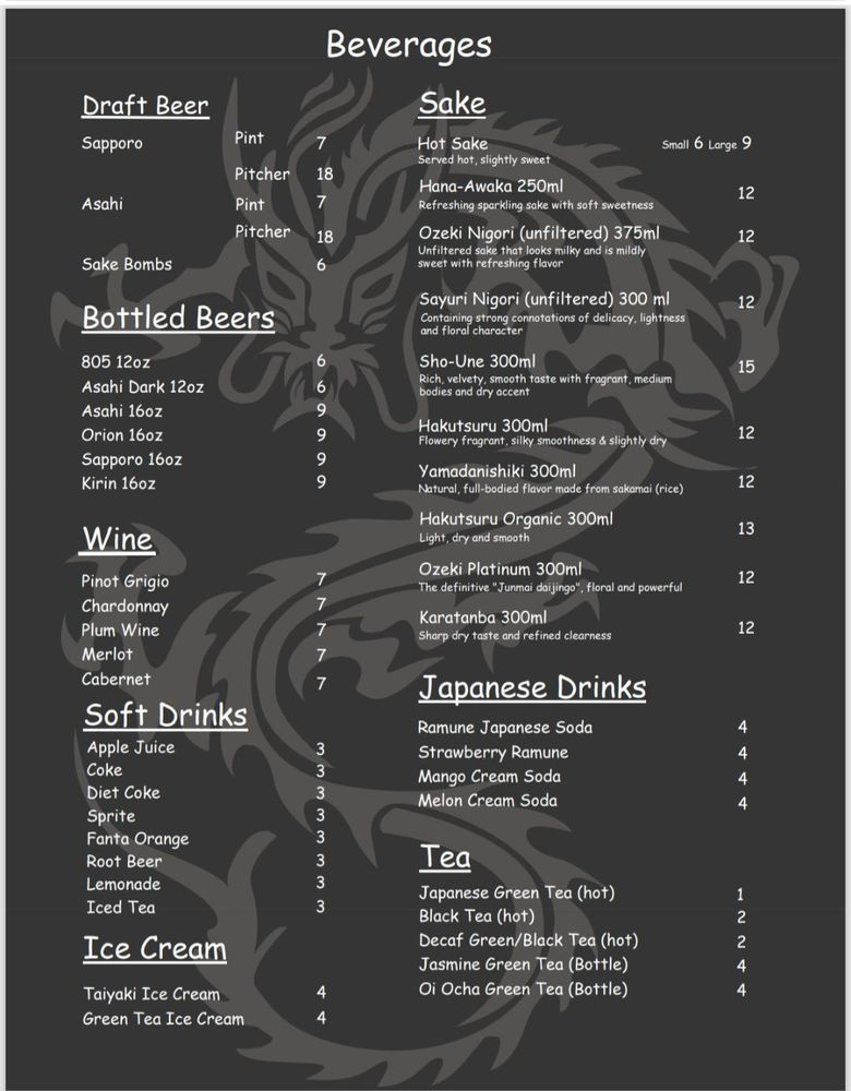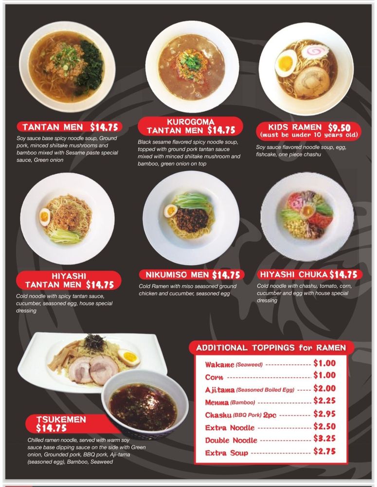 Ryujin Ramen Menu